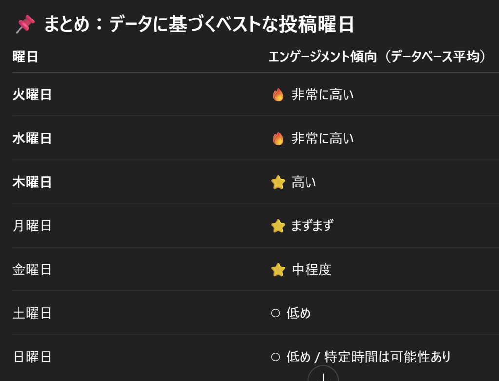 土曜のエンゲージメントは低い。